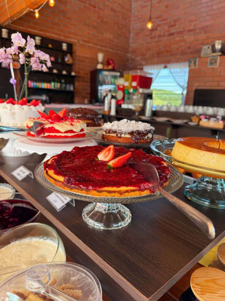 Temos uma enorme variedade de comidas feitas na hora para você e sua família experimentarem, sem contar com o ambiente junto à natureza e uma paisagem maravilhosa. Todos os ingredientes são frescos e da região! O nosso carro chefe é o Bolo do Lírio, um bolo único e exclusivo do Lírio Café Colonial e acompanha a mais nova novidade do cardápio, a sobremesa Pedacinho do Céu, a sobremesa que te faz voltar ao passado e relembrar boas lembranças. Entre em contato conosco para realizar sua reserva ou para realizar um evento no Lirio Café Colonial & Eventos.